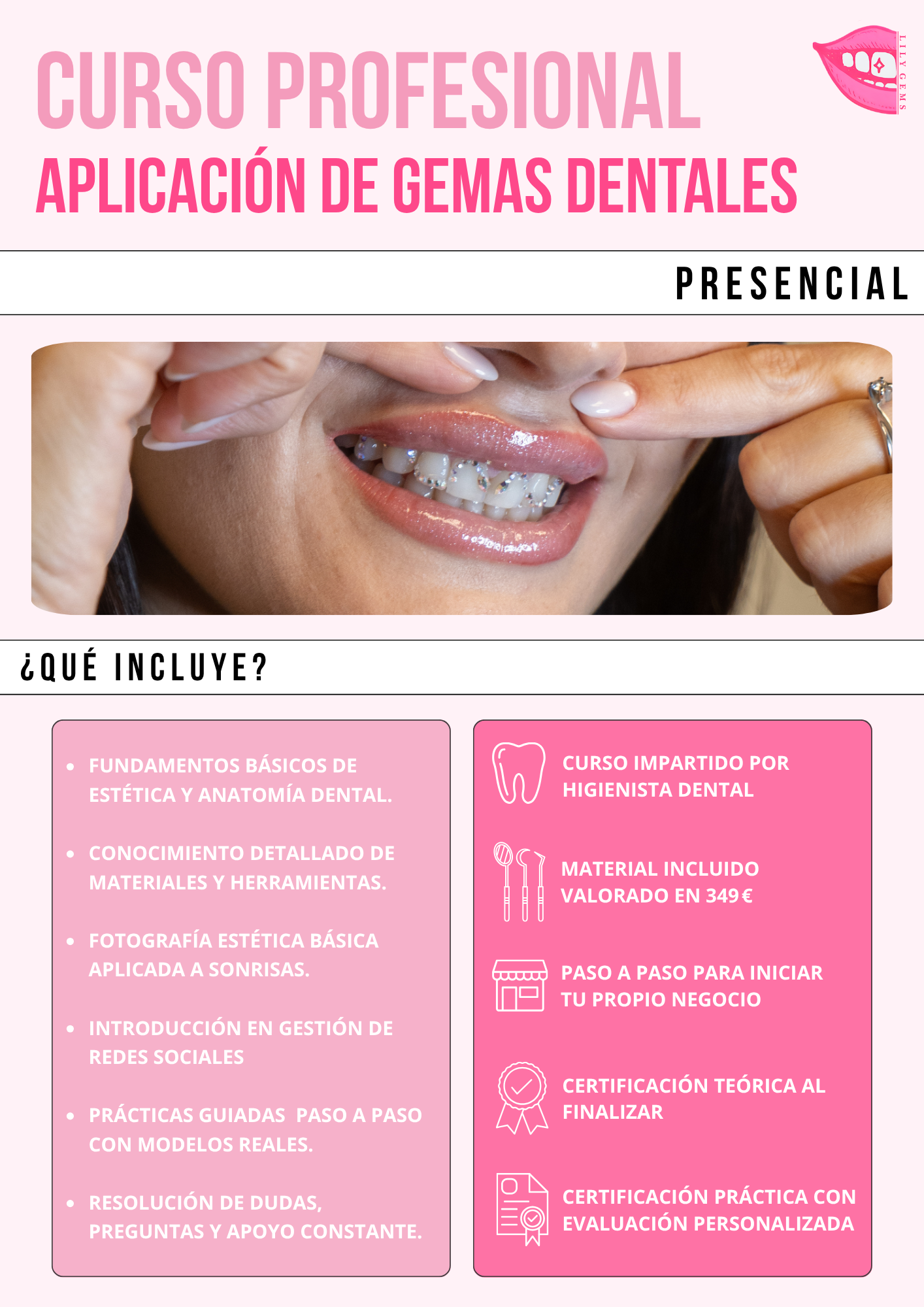 En LilyGems ofrecemos formaciones a personas interesadas en aprender sobre estética dental y, en concreto, sobre la colocación de gemas dentales.