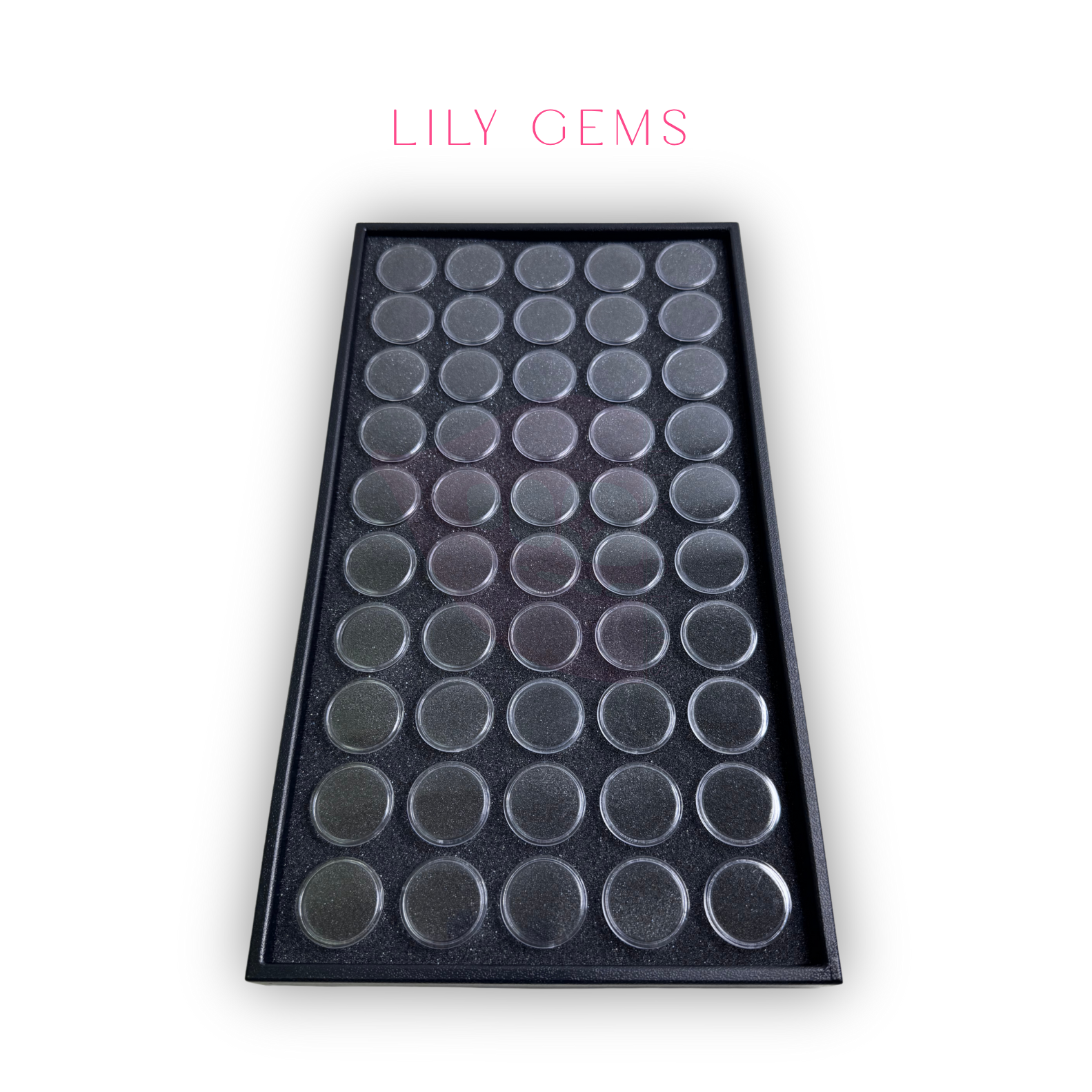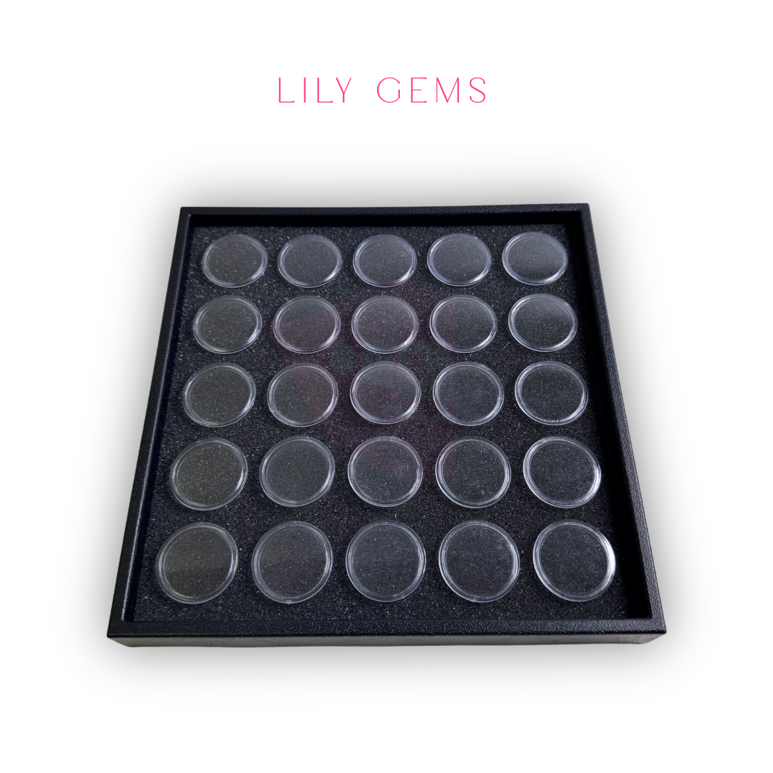 Caja compacta y segura diseñada para almacenar gemas dentales. Incluye compartimentos individuales para organizar cada gema, tapa transparente para visualización rápida y cierre hermético que protege contra polvo y contaminantes. Ideal para uso clínico o personal.